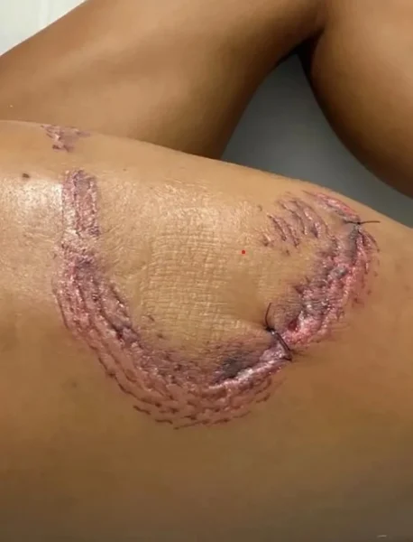 Φωτογραφίες που δημοσιεύτηκαν αργότερα στα μέσα κοινωνικής δικτύωσης δείχνουν πολλαπλές πληγές στο πόδι της, χωρίς ωστόσο να υπάρχει κάποιος κίνδυνος για τη ζωή της.