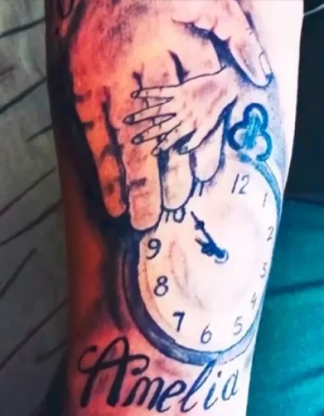 Στο τατουάζ φαίνεται το χέρι του που κρατά το δικό της και το όνομα της 4χρονης, Αμέλια!