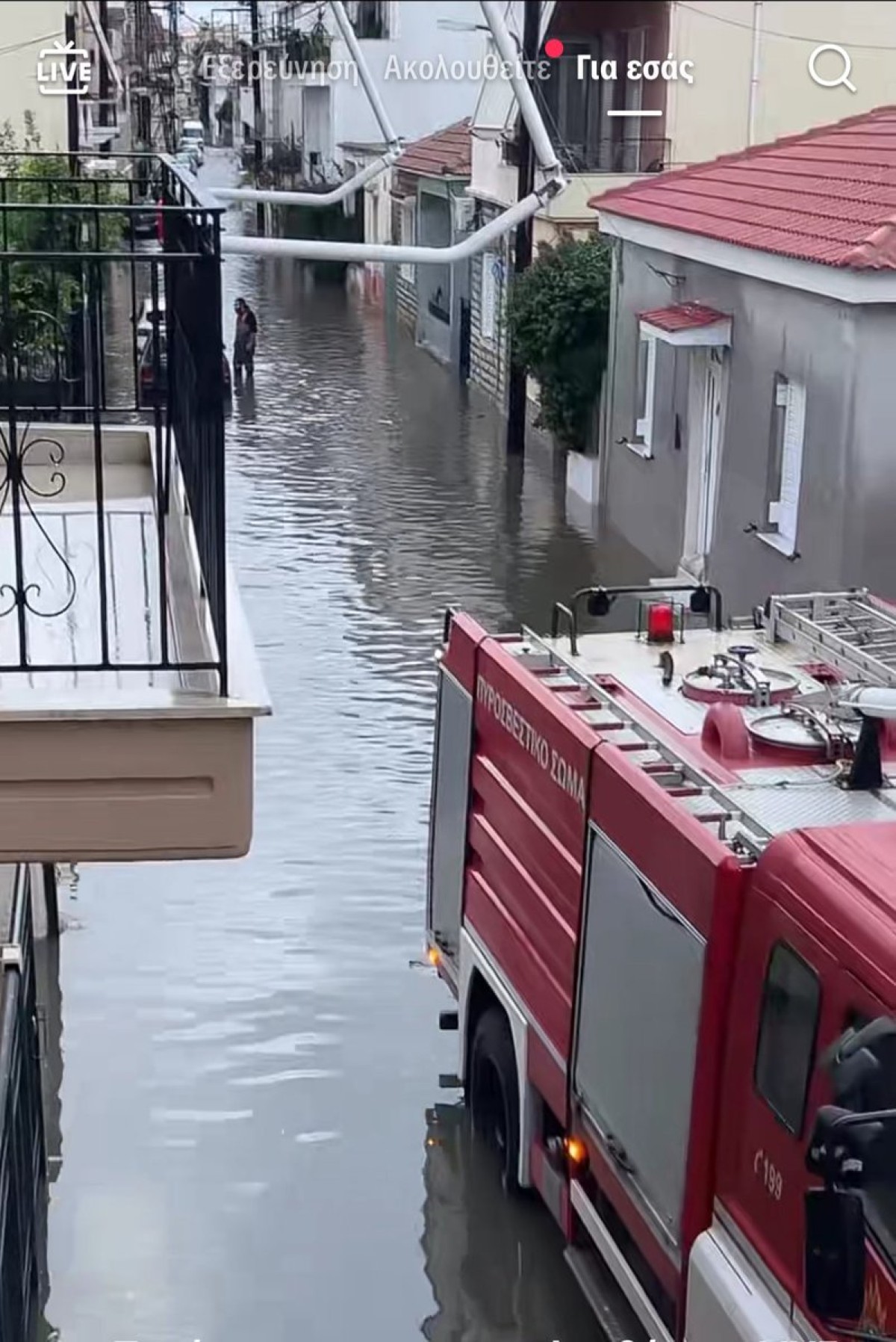 Σε ένα από τα σπίτια όπου κατάφεραν να φτάσουν τα σωστικά συνεργεία, οι πυροσβέστες απεγκλώβισαν ένα παιδί, με έναν από αυτούς να το μεταφέρει στους ώμους του μέσα στα νερά.