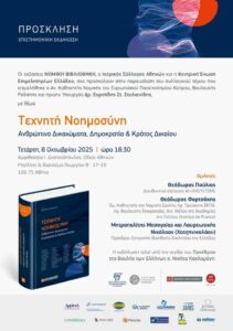 Στο Αμφιθέατρο Ι. Δεσποτόπουλος του Ωδείου Αθηνών (Ρηγίλλης και Β. Γεωργίου Β 17- 19), θα πραγματοποιηθεί η παρουσίαση του συλλογικού τόμου που επιμελήθηκε ο Αν. Καθηγητής Νομικής του Ευρωπαϊκού Πανεπιστημίου Κύπρου, Βουλευτής Ροδόπης και πρώην Υπουργός Δρ. Ευριπίδης Στ. Στυλιανίδης, με θέμα: «Τεχνητή Νοημοσύνη: Aνθρώπινα Δικαιώματα, Δημοκρατία & Κράτος Δικαίου».